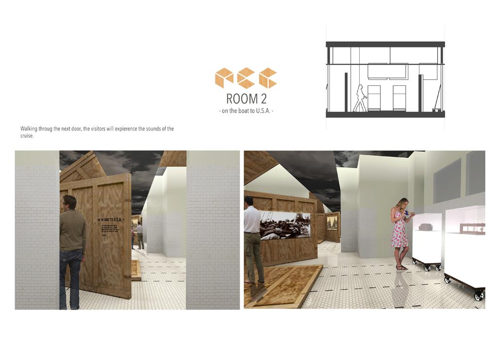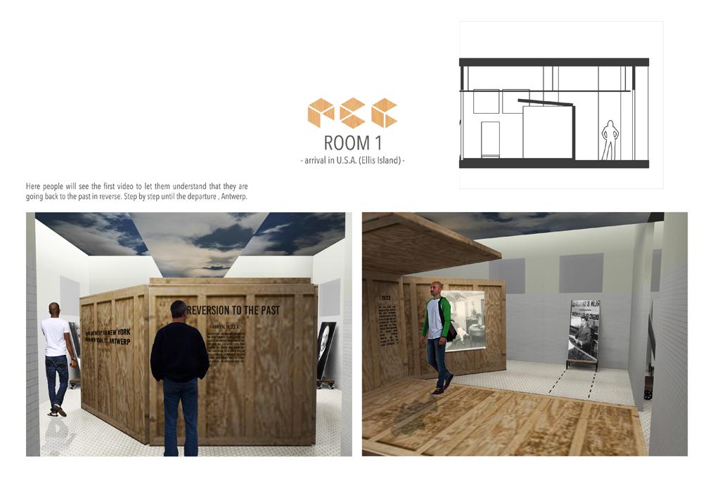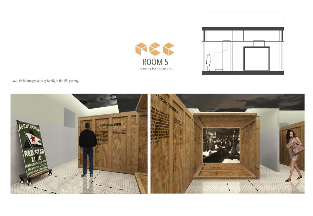 The concept of this museum is to go back in the past. We imagine that the present visitor are in USA, the final destination of red star line boat. The link between each room will be a box who closes room after room like a packing. In those boxes you will find videos that tell the story.
