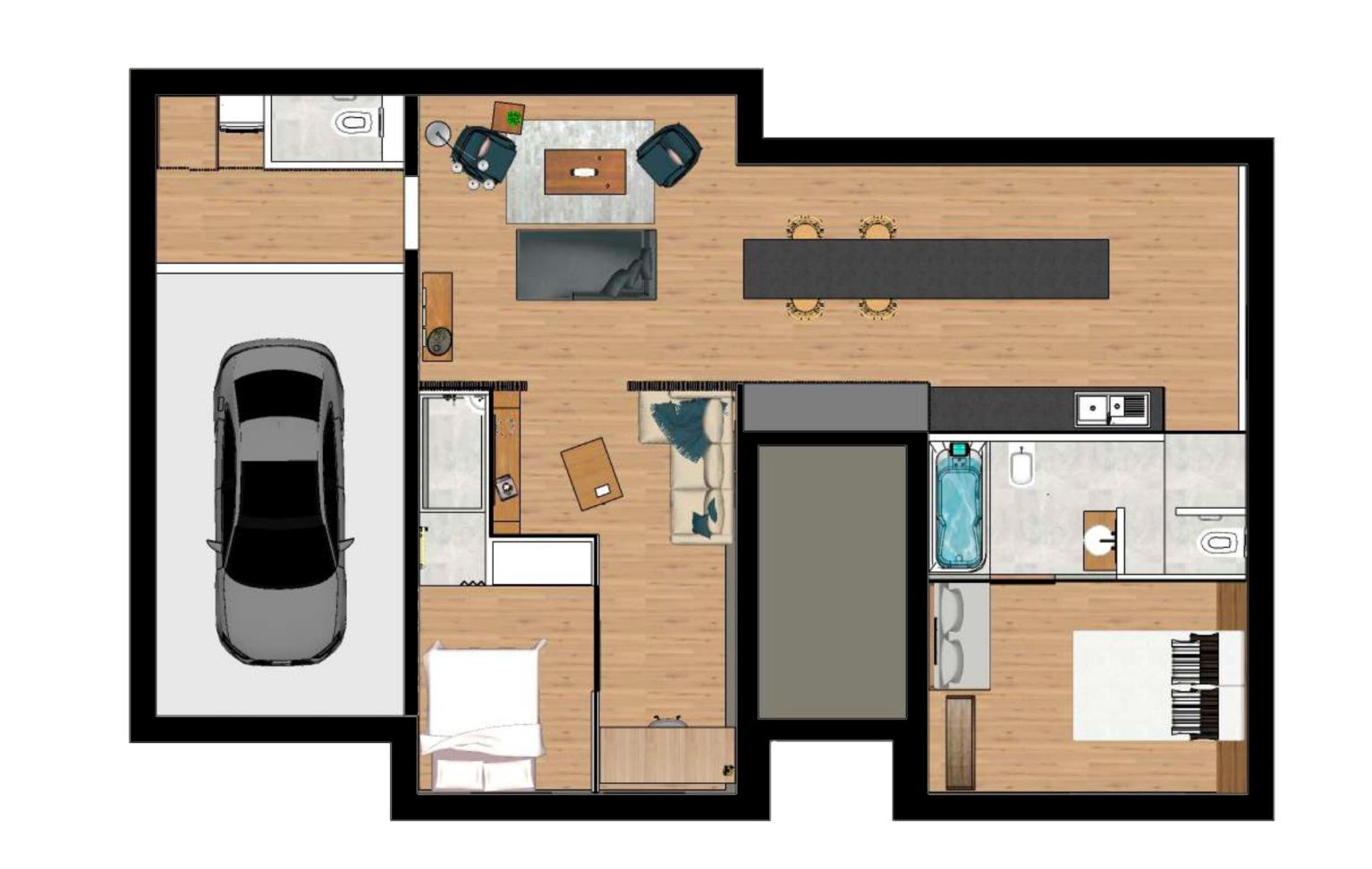 Below, you can see two design proposals for the ground floor, the client chose the one on the right.